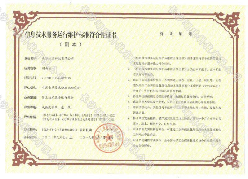 ????? ? ? 長(zhǎng)沙翊琪科技有限公司近幾年來(lái)一直致力于改進(jìn)運(yùn)維服務(wù)手段,提高運(yùn)維服務(wù)水平,改善運(yùn)維服務(wù)質(zhì)量。2021年3月19日,長(zhǎng)沙翊琪科技有限公司ITSS運(yùn)維服務(wù)能力...