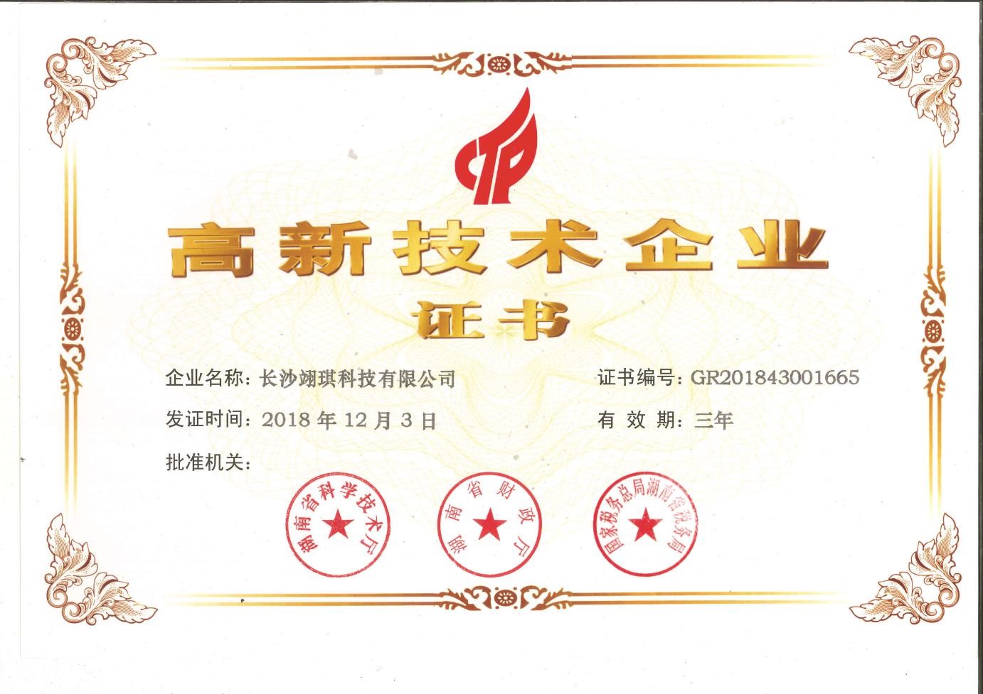 熱烈祝賀長(zhǎng)沙翊琪科技有限公司榮獲 “高新技術(shù)企業(yè)”認(rèn)證